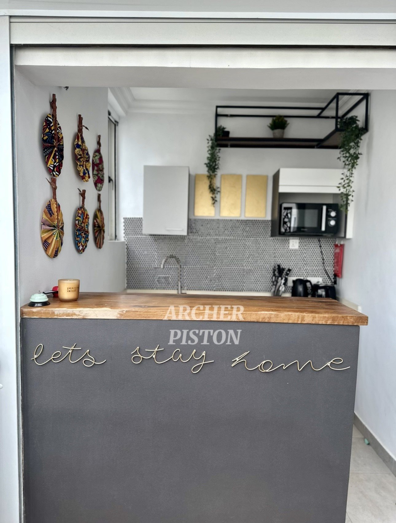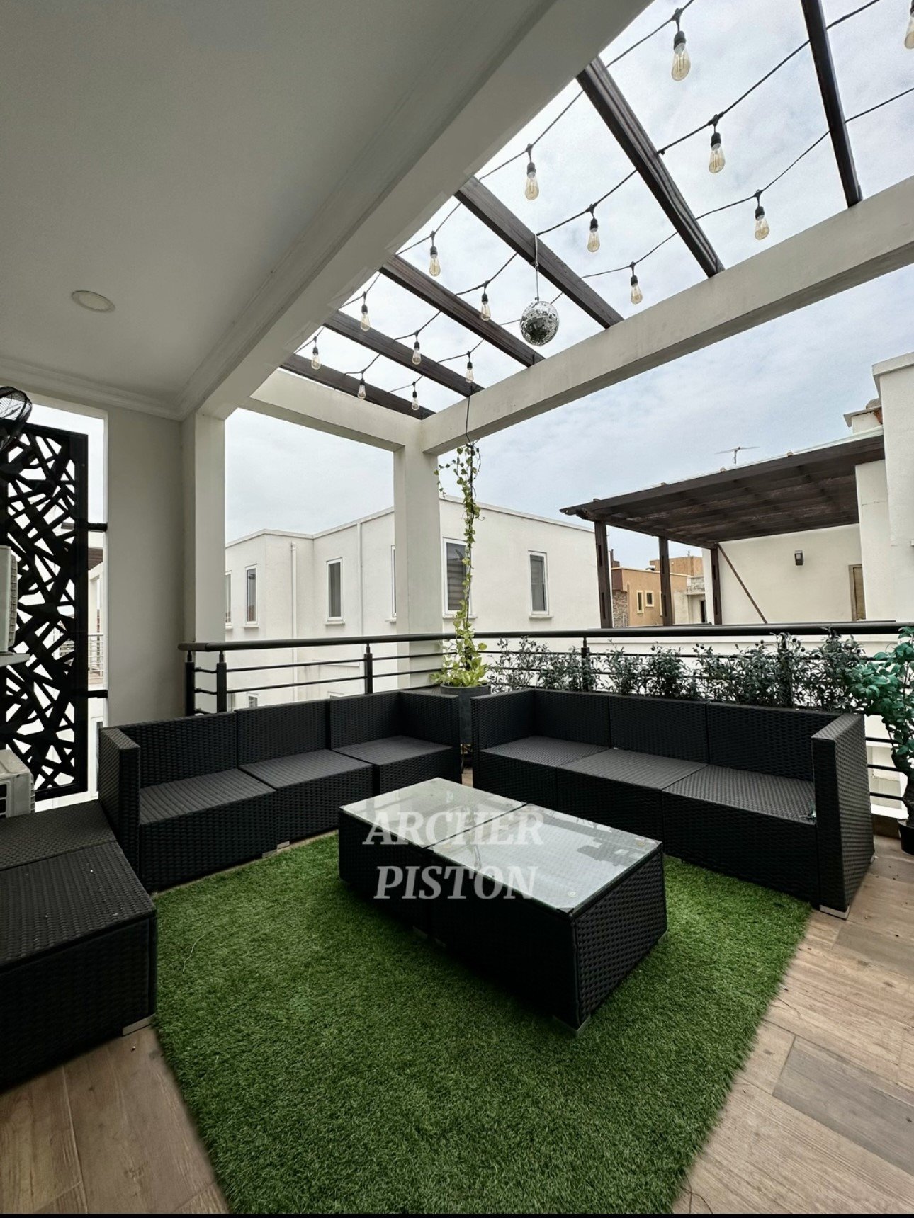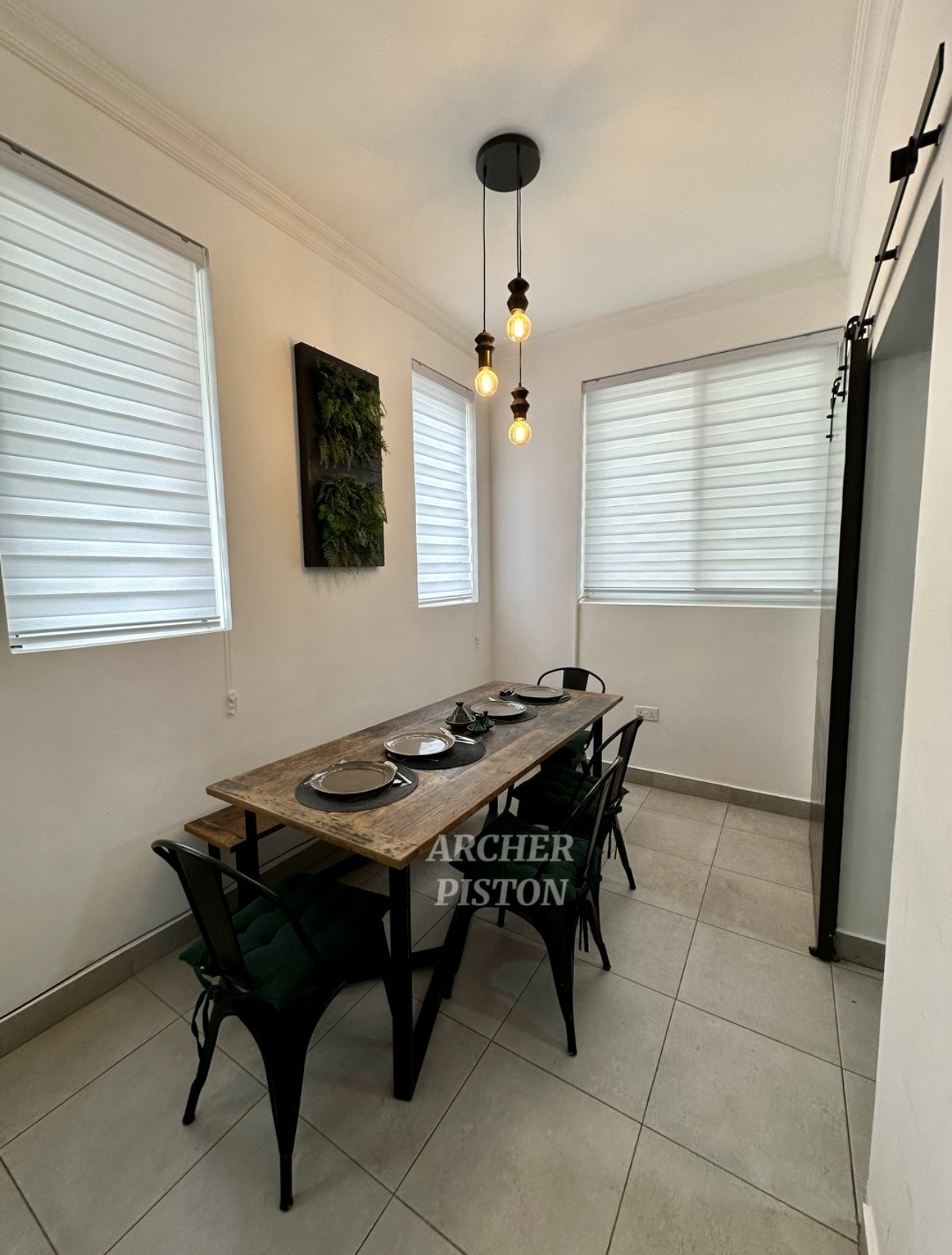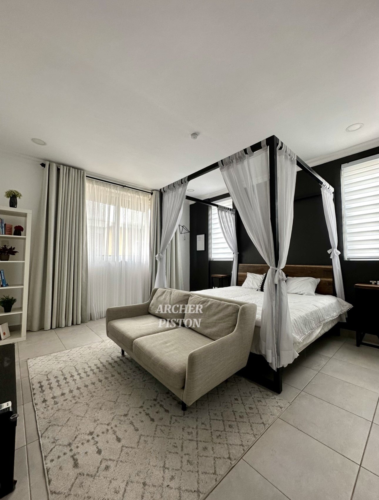 - Open fitted kitchen(kitchen with store, cabinets, microwave, extractor, island and AC) and bar